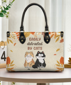 Born To Be A Stay-At-Home Cat Mom Leather Handbag